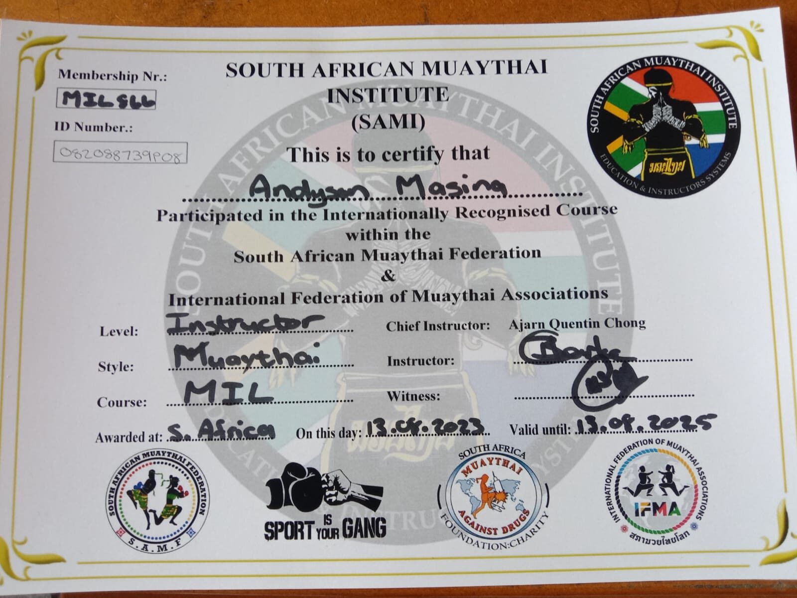 My name is Tzza Anderson Masina. I am 28 years old and I started training in Muay Thai at the age of 16. I am a registered Kru (Instructor) with the South African and International Muay Thai Associations and Federations.